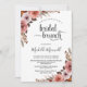Aprecie seus convidados com este belo convite floral Bridal Brunch. Uso de caligrafia moderna escrita à mão e buquês lindíssimos de canto floral com flores numa combinação de rosa pincel, rosé de pêssego e alguns tons arrojados. O cartão está de volta em tom rosa roxo. Parte do Céu em Rosa e Coleção de Eventos.