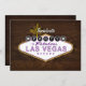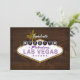 Uma versão atualizada do convite popular para festa de solteira de sinais de Las Vegas. Este tem um nome de evento editável e uma frente decorativa incluindo efeitos de iluminação, com todos os detalhes da parte de trás sobre uma textura moderna de grãos de madeira. Acentos roxos, mas mais masculinos com madeira e tons escuros.