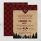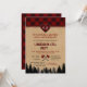 QUALQUER IDADE. Design de cartão único com xadrez búfalo vermelho, silhueta da floresta, um coração xadrez búfalo vermelho para monograma, machadinhas, linda escrita LUMBERJACK & JILL PARTY com efeito xadrez vermelho. Use a ferramenta Personalizar para adicionar suas informações. Para itens correspondentes, visite minha Lumberjack and Jill Party.