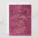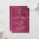 Elegante na moda fuchsia e um convite para casamento moderno de ouro com uma elegante letra manuscrita com caramujos e um monograma da noiva e do noivo. Clássico e elegante, simples e moderno convite.
