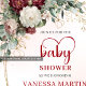 Convites Chic Marsala Flowers Baby Shower Invitation