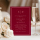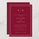 Estes elegantes, modernos e coloridos convites para janto de ensaio de casamento apresentam um simples design de texto minimalista de burgundy e rosa claro, com um quadro clássico na fronteira. Adicione suas iniciais ou monograma para torná-las completamente suas.