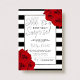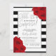 Estes Convites de aniversário chic e na moda surpresa apresentam um elegante falso quadro de folha de alumínio prateado em faixas preto e branco de tendências com rosas vermelhas e uma tipografia moderna que é perfeita para celebrações de qualquer idade. Personalize facilmente o design com seu próprio texto e encontre itens correspondentes em www.zazzle.com/invitation_republic.