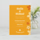 Um design de casamento floral com uma reviravolta moderna em um tema retrô dos anos 70. Matizes laranja e flores hippies. Mude facilmente as informações para o seu design pessoal de casamento. De uma série de papéis de carta pessoais do Design Fino de Chessie. Exibir a coleção através do link nesta página.