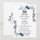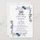 Este elegante convite de aniversário de casamento de 50 anos dourado e azul marinho pode ser personalizado com suas informações em tipografia moderna. Criado por Thisisnotme©