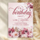 Convites Chic Pink Burgundy Floral Glam 75th Birthday