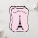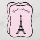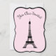 Esta design feminina e chica apresenta uma imagem branca preta da Torre Eiffel sobre um fundo cor-de-rosa suave. As palavras "You Are Invited" aparecem em letras elegantes em francês preto, ou você pode mudar isso para uma mensagem diferente. As informações da sua festa vão para trás. Uma maneira fácil de adicionar o estilo de Paris à sua festa.