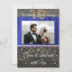 Convite Chic Black and Gold com seda azul apresenta a fotografia do casal.