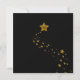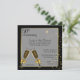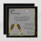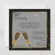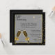 Convite de aniversário de casamento de cinquenta anos elegante feito em preto com uma área de texto semi-transparente com bordas em tom dourado, no meio. Gráficos de duas taças de champanhe e estrelas em tom dourado finalizam este convite impressionante. O texto em preto é totalmente personalizável para atender às necessidades do seu evento. Lindo convite que você terá orgulho de enviar.