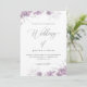 Caligrafia elegante com delicada cor d'água roxa floral floral e folhagem, convite para casamento de fotos de cheio.
