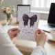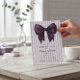 Host a memorable birthday party with this chic and modern invitation, adorned with classic lavender and white vertical stripes. A striking, deep purple bow graces the front, offering a sophisticated focal point for the celebration announcement. All necessary event information is presented in elegant typography, guiding your guests to the festivities. The back includes a convenient 'SCAN HERE' section with a QR code, streamlining the RSVP process and adding a high-tech touch to your traditional party planning. This design is perfect for anyone seeking a blend of style and ease.
