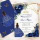 Personalize este bonito convite de 16 anos de Quinceañera, floral azul real, Quinceañera, fácil e rápido. Basta clicar no botão personalizar para editar os textos, alterar as fontes e as cores das fontes. Apresentando uma garota vestida com um belo vestido azul real, flores azuis quentes e borboletas. Itens correspondentes disponíveis no repositório. c) Paperie fina de Somerset pelo Happy Cat Studio.