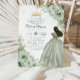 Personalize este elegante convite de 16 anos para a floral verde Quinceañera / doce, fácil e rapidamente. Basta clicar no botão personalizar para editar os textos, alterar as fontes e as cores das fontes. Apresentando a cor aquosa macia sage flores verdes, uma garota vestida com um lindo vestido verde de bola e uma coroa de princesa de ouro. Perfeito para quinceanera, doce dezesseis, 18º aniversário, bola de debutante e muitas outras ocasiões! Itens correspondentes disponíveis no repositório. c) Paperie fina somerset