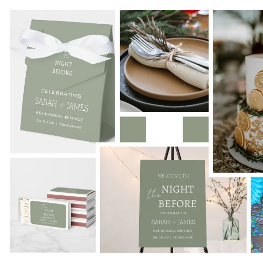 Convites Chic Sage Green na Noite antes do Janto de ensaio