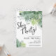 Convite de aniversário de 30 anos feminino elegante e moderno com palmeira tropical. Celebre os trinta anos dela com este convite de aniversário de trinta anos elegante, mas divertido. Um design tropical que abraça a beleza tranquila da natureza misturada com uma pitada de diversão que certamente ajudará você a se divertir. Uma mistura de folhas tropicais verdes, como folhas de palmeira, monstera, banana e mais, juntamente com outras folhagens. Uma fonte tipográfica moderna manuscrita ou de roteiro, esta impressão encantadora irradia charme e sofisticação. No verso há um ponto preto e branco desordenado ou ponto dálmata, mas você pode removê-lo se quiser mantê-lo simples.