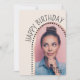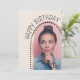 Esses convites simples e chic de aniversário de fotos apresentam uma foto em forma de arco, bolinhas e um nome e texto personalizáveis de script na frente. Uma forma excelente de mostrar a pessoa que comemora seu aniversário. Clique no botão personalizar para personalizar este design.