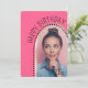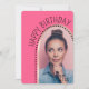 Esses convites simples e chic de aniversário de fotos apresentam uma foto em forma de arco, bolinhas e um nome e texto personalizáveis de script na frente. Uma forma excelente de mostrar a pessoa que comemora seu aniversário. Clique no botão personalizar para personalizar este design.