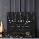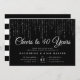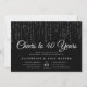 Nossos elegantes convites de festas de aniversário em preto e branco chico apresentam um fundo preto rico com cordas de luzes brancas no topo, e "Saúde a XX anos" na tipografia de scripts de caligrafia. Personalizar para qualquer aniversário de marco; exemplo mostrado para um aniversário de 40 anos. Personalize com seus detalhes de comemoração do aniversário de casamento em letras brancas.