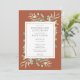 Com delicadas folhas de folhagem em aquarela sobre um fundo de terracota, este convite de almoço de noivas chic pode ser personalizado com as informações do seu evento de celebração especial. Concebido por Thisisnotme©