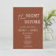 Clássico Moderno Terracotta com letra branca na Noite antes do Ensaio Jantar Convite de Casamento