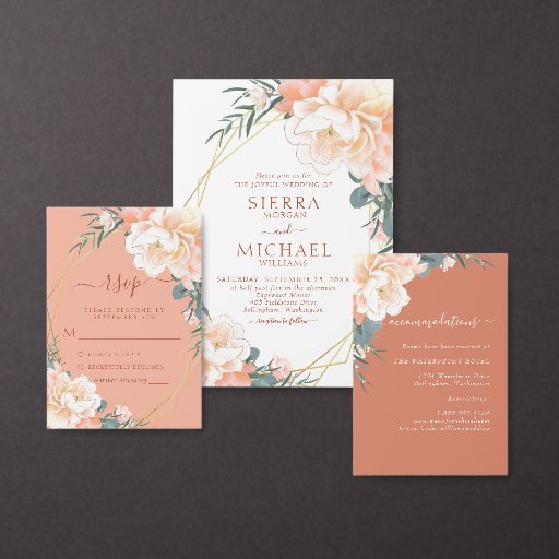 Convites Chic Terracotta Peach Cream Dourado Salvar Data