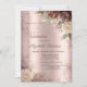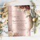 Um convite moderno, chico e glamouroso com rosas de terracota em fundo rosa-ouro.