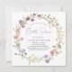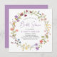 Um chá de panela elegante com "Chá de panela" apresentado num guião púrpura de lavanda chica e uma coroa inspirada em ventre de cores púrpura, rosa, pêssego e amarelo da flor selvagem. Personalize o nome da noiva e os detalhes do chá em simples lavanda e cinza.