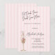 Elegant wine glass on a pink striped background. This elegant design features a sophisticated Martini glass illustration, adding a touch of luxury to your event invitations. Impress your guests with this chic and timeless bridal shower, setting the tone for a glamorous celebration to come.