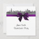 Chicago Skyline Etch Look 01 Invitation Suite Purple Ribbon - Convite para Festa de solteira Elegante, convites e acessórios personalizáveis para chic e na moda com uma vista gravada a preto e branco do horizonte de Chicago, Illinois. Ele também apresenta um arco de aparência de uma púrpura. Este produto faz parte de um conjunto de designs correspondentes que são facilmente personalizáveis para muitas ocasiões e eventos. Se você precisar de placas RSVP separadas, Obrigado Notas, Carimbos, ímanes, etiquetas de vinho, menus, cartas de escolta, programas de eventos, etiquetas de favorecimento ou outros acessórios, por favor verifique nossas outras listas. Se você não vir um produto correspondente ao qual você está interessado, ou gostaria de ver esse design em cores diferentes ou com fotos diferentes do NYCisMyMuse que você vê em nossa loja, entre em contato conosco e ficaremos felizes em acomodá-lo. Observe que esta é uma design gráfica / foto que é transferida para o produto subjacente e não contém tecidos, fita, metais, gravura, joias ou gravuras reais. 2013 ©NYCisMyMuse
