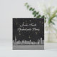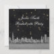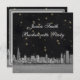 Vista da Silhueta de Chicago Illinois Gravada em Preto e Branco, Coleção de Convites para Festa de Despedida de Solteira com Fundo Preto e Estrelas Douradas e Brancas