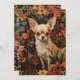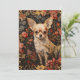 Design charmoso com uma capa bonita revestida de cabelos longos Chihuahua em um jardim floral inspirado no estilo de William Morris.