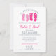 Marinho azul e rosa flipflops praia chá temático casal com chinelos cor-de-rosa e faixas azul e branca marinho atrás deste elegante e clássico convite para casal para a futura noiva e noiva. Personalize como preferido.