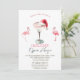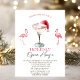 Aquarela de coquetel de Natal com chapéu de Papai Noel e flamingos rosa em um fundo branco. Esses belos convites de Natal são perfeitos para convites de jantar de Natal, convites de troca de presentes de Natal, arrecadações de Natal, convites de baile de Natal e outros eventos realizados durante o mês de dezembro. Basta usar os campos do modelo para adicionar as informações do seu evento.
