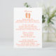 Chinelos laranja tropicais divertidos e toalha de praia cartão de informação de convite de casamento na praia. Itinerário de um lado e acomodações do outro lado. Personalize o texto como preferir.