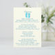 Chinelos azuis de pavão divertidos e toalha de praia cartão de informações de convite de casamento de praia. Itinerário de um lado e acomodações do outro lado. Personalize o texto como preferir.