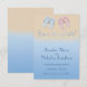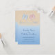 Um anúncio de casamento divertido e moderno para salvar a data que tem um clima relaxado de resort de praia. Areia simulada e surf fornecem o fundo para sandálias de chinelos azuis e rosas na parte superior do cartão.