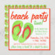 O convite apresenta uma ilustração original feita à mão de um par de chinelos de borracha verdes e laranjas. Perfeito para uma festa de verão na praia ou piscina. Basta personalizar com as informações do seu evento.