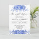 Chinoiserie Floral De Porcelana Azul Na Noite Antes Do Convite. Este na moda e elegante The Night Before Invitation apresenta uma linda cor d'água pintada manualmente Blue Porcelain Floral Chinoiserie. Localize itens correspondentes na Coleção de Casamentos Florais de Porcelana Azul.