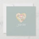 Uma coroa de flores reunidas e folhagem misturada com bagas, o texto do convite para casamento. O verso tem um sábio prateado, cor verde-cinza suave (que pode ser mudada) com forma cardíaca criada das mesmas flores que a frente. Um conjunto completo de produtos correspondentes está disponível. Copyright, Audrey Jeanne Roberts.