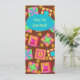 Convide um amante de colcha ou colcha com este convite colorido de colcha retangular alta e totalmente personalizável. Personalize completamente na frente e atrás para adicionar suas próprias palavras, nomes e outras informações. Esta arte original de colcha faz um convite vibrante. A arte quilt baseada na arte original apresenta blocos de manta de retalhos favoritos mais blocos únicos em cores dinâmicas e vibrantes de laranja, amarelo, rosa, turquesa, e verde limão sobre um fundo castanho de chocolate para uma bela paleta colorida. Um azul azul-azul-turquesa está na frente do cartão para dizer "Você é Convidado" ou outras palavras da sua escolha. Mostre o seu amor por colchar com estas designs de arte colcha com outros produtos de arte colcha. A arte quilt é uma arte original da designer de tecidos e mantas Phyllis Dobbs e está em uma coleção de tecidos da Quilting Treasures. Esta arte está disponível em outros produtos e em vários planos coloridos. Há mais produtos disponíveis na loja Business da Phyllis com Flair. Corresponder com carimbos coordenadores, envelopes, adesivos e etiquetas de endereço de retorno.