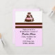 Um chá de panela macio e elegante com um bolo de 4 camadas em chocolate e rosa. As fitas e as flores brancas em cascata o acendem. Personalize com todas as suas próprias informações conforme desejado.