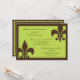 Este os convites intemporais do chocolate e do limão do evento da flor de lis são perfeitos para todo o evento dos chás de panela aos jantares de ensaio. Os convites caracterizam os símbolos castanho chocolate da flor de lis colocados ao esquerda e direito do convite com uma beira castanho chocolate em um fundo do limão. Preencha o modelo com sua informação de evento. O clique "personaliza-a" para fazer umas mudanças mais extensivas à colocação da pia batismal e do texto.