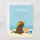 Chocolate Labrador Puppy Palha Palha Chapéu Convite para Chá de fraldas. O laboratório de chocolate está se divertindo na praia! Brincadeira e engraçada Labrador Retriever arte criada por Naomi Ochiai do Japão. Boa ideia para pessoas de cães que amam Labrador Retrievers.