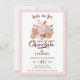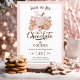 Chocolate Quente e biscoitos de gengibre convite de festas de Natal moderno, fofo e elegante, cor-de-rosa, bege e castanho, todos colocados sobre o fundo branco com uma estrutura de rosa claro. Personalize facilmente o texto. - Kate Eden Art