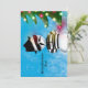 Espalhe a Alegria de Natal com este cartão divertido que mostra a minha ilustração de um boneco de neve que olha para as luzes das árvores de Natal na neve.