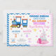 Get ready for a magical celebration that’s full steam ahead with this adorable Train & Princess birthday invitation! Featuring a bright blue and orange locomotive on one side and a dreamy pink royal castle on the other, this design is perfect for a fun and unique shared party.