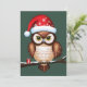 Ce design charmant présente une illustration détaillée d’une chouette brune et blanche perchée sur une branche. La chouette porte un bonnet de Noël rouge parsemé de flocons de neige blancs, ajoutant à l’esprit festif. Ses grands yeux captivants attirent l’attention, tandis qu’un petit cadeau rouge avec un ruban blanc repose subtilement à la base de la branche, suggérant la nature généreuse de la saison des fêtes. Ce design capture la chaleur et la joie de Noël à travers la représentation de cet oiseau emblématique de l’hiver dans un cadre cosy et célébratoire.