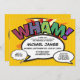 Um humorístico divertido, legal e moderno inspirou batismo, um convite batizante que coloca o murro, o zap, o poder no evento de celebração do seu super-herói. O inverso apresenta um padrão de bolinhas de quadrinhos e uma bolha de voz correspondentes para detalhes e endereços de eventos adicionais. Projetado por Thisnotme©