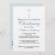Chamadas Elegantes de Christening Cross Son com simples cruz de prata pintada à mão com sotaques de ouro na frente e atrás do cartão. Fresco e com aspecto estaladiço. Christening e Child's Name estão escritos em bonito roteiro azul. Personalize com o Primeiro ou Primeiro Nome e Meio do Seu Bebê, Data de Natal e detalhes. A parte de trás da carta é a cinza azul-clara com a redação Criança de Deus em texto prateado, com uma imagem prateada de chocalho com estrela azul e a aparência de arco azul com sombra. O amor está escrito em texto branco. Arte original e Design © 2018 TamiraZDesines.