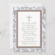 Convite de Natal azul-bebê e castanho com cruz decorativa e estrutura paisley. Personalizar para batismo, comunhão ou qualquer evento religioso especial.